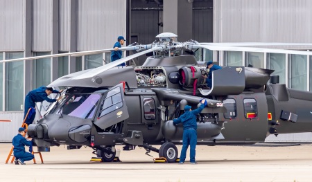 - obranné: identifikační systém „vlastní-cizí“ (anténa mezi stropními okénky pilotní kabiny), výstražný radiolokační systém (po jednom páru antén na bocích přední a zadní části trupu), výstražný protiraketový systém, výstražný laserový systém (jeden pár senzorů na bocích přední části trupu) a dva páry výmetnic klamných IČ/RL cílů (po jednom pod hlavním podvozkem a na bocích přední partie ocasního nosníku)